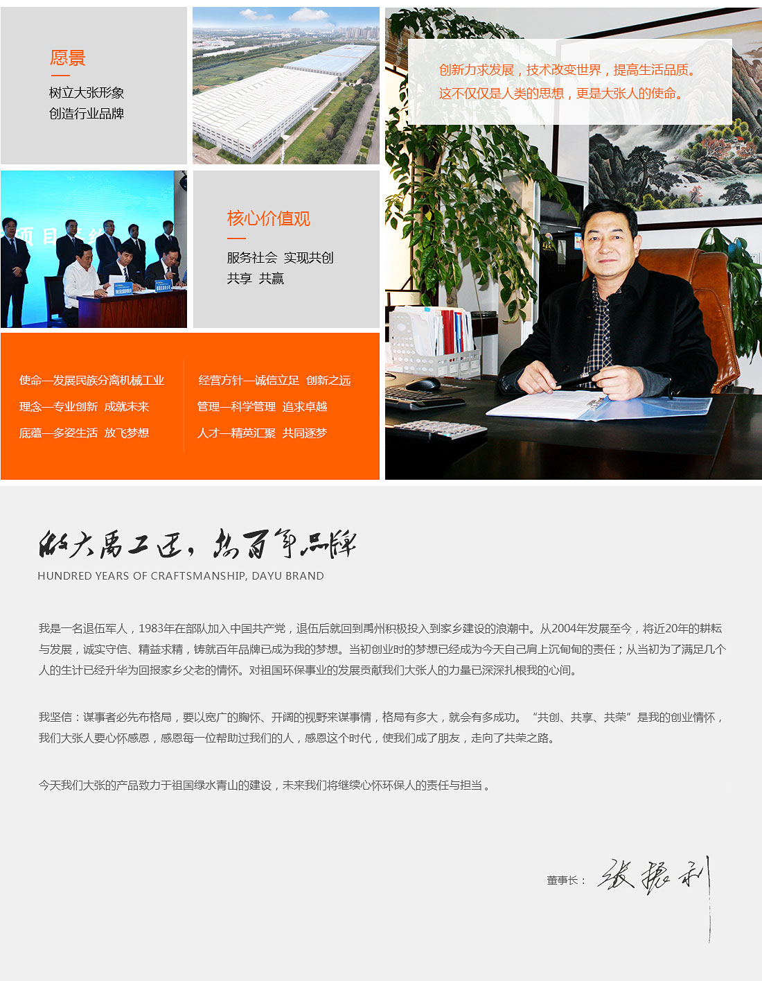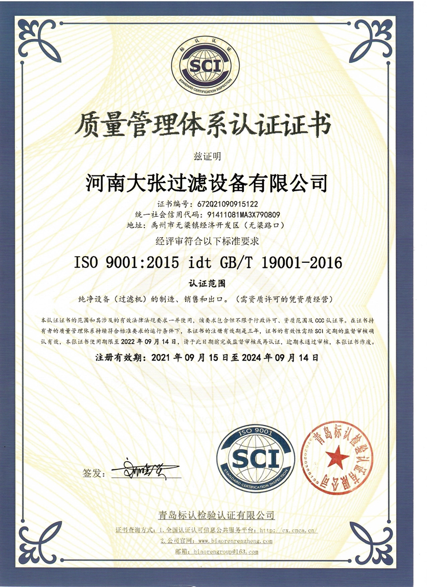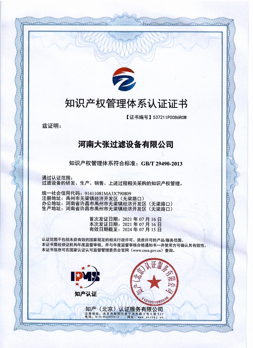 河南大張自成立以來(lái),堅(jiān)持以質(zhì)量求生存、以信譽(yù)求發(fā)展,先后通過(guò)了質(zhì)量管理體系、環(huán)境管理體系、職業(yè)健康安全管理體系及知識(shí)產(chǎn)權(quán)管理體系的認(rèn)證,河南大張及關(guān)聯(lián)公司先后獲得了“國(guó)家級(jí)高新技術(shù)企業(yè)”、“國(guó)家級(jí)第三批專精特新小巨人企業(yè)”、“國(guó)家級(jí)兩化融合管理體系評(píng)定證書(shū)”“河南省技術(shù)創(chuàng)新示范企業(yè)”、“河南省節(jié)能減排科技創(chuàng)新示范企業(yè)”、“河南省優(yōu)秀科技型企業(yè)”、“河南省文明誠(chéng)信企業(yè)”、“河南省名牌產(chǎn)品”“河南省工業(yè)設(shè)計(jì)中心”“許昌市市長(zhǎng)質(zhì)量獎(jiǎng)提名獎(jiǎng)”等稱號(hào)。公司始終堅(jiān)持創(chuàng)新力求發(fā)展,技術(shù)改變世界,取得令人矚目的成果。2013年研發(fā)的“免加工密封式方形聚丙烯濾板”打破了中國(guó)市場(chǎng)被歐洲壟斷的局面;2015年成立的“河南省新型固液分離裝備工程技術(shù)研究中心”,是河南省一家從事固液分離裝備技術(shù)開(kāi)發(fā)和應(yīng)用的專業(yè)機(jī)構(gòu);2017年成立的“河南省企業(yè)技術(shù)中心”證實(shí)了公司科技創(chuàng)新的實(shí)力和水平,2018年“高分子隔膜濾板智能自動(dòng)化混料體系研發(fā)與產(chǎn)業(yè)化”、2019年“環(huán)保行業(yè)專用壓濾機(jī)的濾板關(guān)鍵技術(shù)研發(fā)及產(chǎn)業(yè)化”相繼被列入許昌市重大科技專項(xiàng)項(xiàng)目;2020年公司董事長(zhǎng)張振利榮獲“全國(guó)優(yōu)秀農(nóng)民工”稱號(hào)。該年度公司被河南省科技廳認(rèn)定為“河南省高分子濾板先進(jìn)材料工程技術(shù)研究中心”,參與制定壓濾機(jī)方面的團(tuán)標(biāo)3件,修訂國(guó)家標(biāo)準(zhǔn)1件。其相關(guān)技術(shù)在國(guó)內(nèi)處于優(yōu)勢(shì)。2021年公司被河南省科技廳評(píng)為“河南省瞪羚企業(yè)”榮譽(yù)稱號(hào)。隨著實(shí)力的不斷增強(qiáng),公司成為中國(guó)通用機(jī)械工業(yè)協(xié)會(huì)分離機(jī)械分會(huì)副理事長(zhǎng)單位,同時(shí)為滿足市場(chǎng)上對(duì)壓濾機(jī)產(chǎn)品的需求。