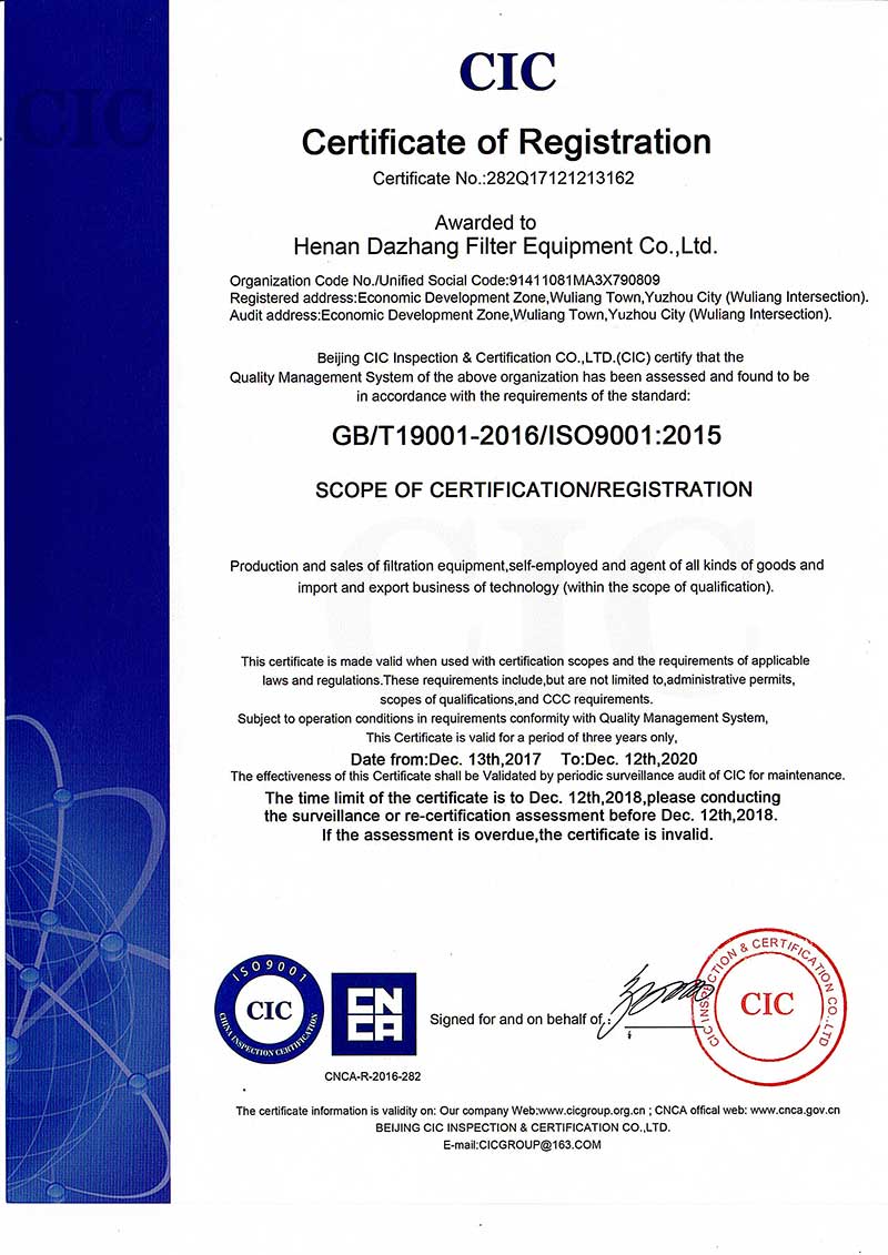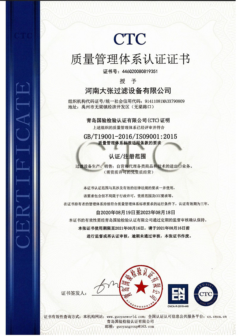 2020年9月9日——河南大張過(guò)濾設(shè)備有限公司榮獲“高新技術(shù)企業(yè)”證書(shū)