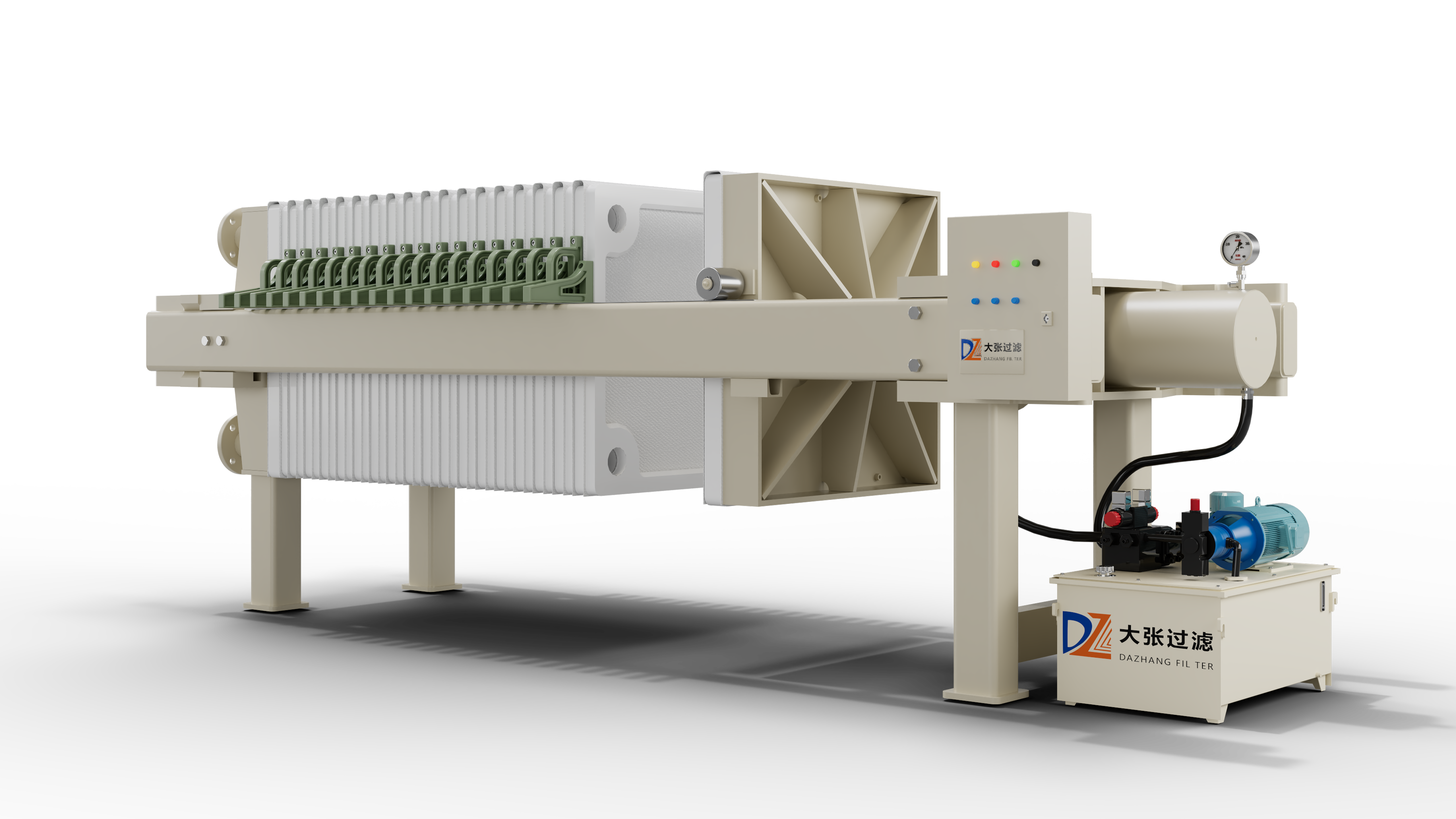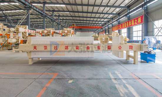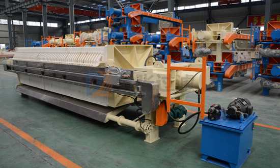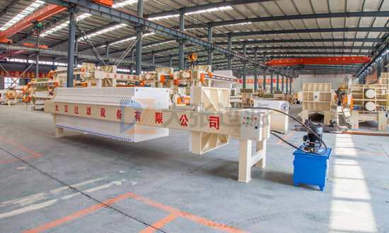 液壓壓緊板框式壓濾機由主機(機架和濾室)、液壓部件和電氣等部分組成。